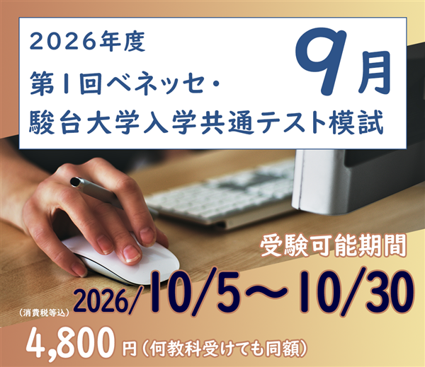 学校で「第1回ベネッセ・駿台大学入学共通テスト模試」を受験した、もしくは受験予定の方は、お申し込みいただけません。